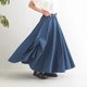 全新改良的丹宁素材长裙登场。这款丹宁与以往的旧款不同,我们选用了重新调整厚度和色调的新素材。新款丹宁比旧款稍微轻薄,质地更显飘逸,因此能适合全年四季着用。