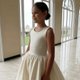 这款轻盈的连衣裙让孩子活动自如。紧身胸衣饰有珍珠,并采用拉链设计。