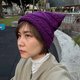百分之百手工编织紫色毛线方角帽