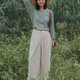 米蕨綠色長袖T恤以極簡的線條勾勒出靜謐的詩意,比苔蘚溫柔,比新葉深邃,像季節最安靜的十分鐘穿在了身上。