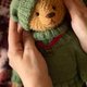 艺术家手工制作的马海毛泰迪熊,穿着针织毛衣和帽子。
