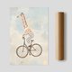 《午后踏风的长颈鹿 Afternoon Ride》为插画家 Purple 的童趣创作。以柔和蓝天作为背景,长颈鹿悠然踩着脚踏车,表情自信自在,画面蕴含一种慢活生活的诗意氛围。这不只是装饰画,更是一则鼓励勇敢前行的轻盈童话。