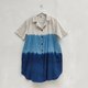 自然与舒适兼具的经典连衣裙。宽松版型,短袖翻领设计,前排配有真椰壳纽扣,附长绑带可自由系于前方或后方,展现不同造型。采用厚实柔软的水洗棉布,手工靛蓝染制,呈现独特的三色渐变效果。无论是上班、旅行、周末休闲或日常穿搭,都能轻松展现个性与品味。
