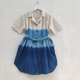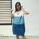 三色渐变靛蓝短袖翻领连衣裙 椰壳扣设计