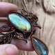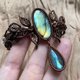 选用优质天然石,纯铜线绕制, 然后用不伤害裸石的氧化液浸泡做旧,再用抛光棒反复打磨,令铜线的效果更立体丰富,最后配上手工编织的项链绳即可。