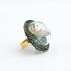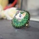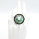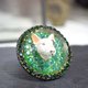 布爹利小狗玻璃罩戒指 缀绿色施华洛世奇水晶绕边 斗牛㹴 牛头㹴