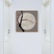 以中式美学的雅致笔触,描绘满月下的桃花枝影。墨色枝干遒劲有力,粉色花瓣点缀其间中,与圆润明月相映成趣。整幅画将东方诗意与现代简约相融,寓意花好月圆、人间美满,增添温润的文化气息。