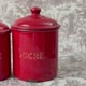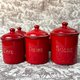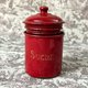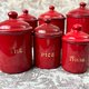 50741-稀有完整六入法国古董艳红珐琅收纳罐 Extremely rare set of six complete antique French enameled storage canisters