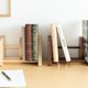 利用放置书本的样式所可以滑动的隔板。不仅漂亮还兼具机能性的精简设计。另外这隔板相当有厚度,且跟书架本体一体化,因此即是排放厚重的书本也不用担心它会倒下。如果是小小的书架,放厚重的书就很容易倾倒。大型的虽然相当安定,但也会让书桌的空间变得狭窄···。这款则是取两者优点而成的书架。