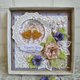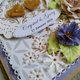 制作此卡片使用的材料包含:卡纸、设计师纸张、手工花叶、仿旧印台、压印粉、裂纹漆。