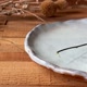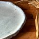 独特风格的陶盘,以无规则造型、白釉泛蓝釉呈现,经过高温烧制,可盛食物,亦可为家居收纳盘或装饰。