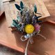 胸花尺寸约12厘米 干燥花及永生花制品完成,花材勿放置容易潮湿的地方 会容易发霉喔!