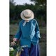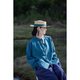 小翻领,领下抽着细细的褶,及简风格下的小细腻。落肩式长袖是松驰的线条,开门襟,斑驳烧旧的小纽扣,带着嘟特的肌理。大身处理的巨好,显瘦,真的显瘦,但是上身却有很好的包容力,宽松度用了一种藏匿的手法让她看起来小巧,但实则宽松有余量。
