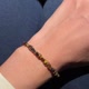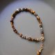 大地色与金色的层层堆叠,灿若明霞。 ·用料:铜镀金、黄虎眼石、黑胆石、玻璃米珠 ·附 2.5~3 厘米延长链 线材:德国进口 Griffin 珠宝不锈钢丝线(尼龙覆膜,防水耐磨) 包材:泡泡防震信封袋 + 厚夹链袋(赠拭银布一枚)