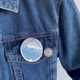 以静冈县都富士市人孔盖为设计的5CM直径别针。设计刻画了置身延绵白云和碧海浪涛中的美丽富士山。