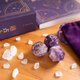 搜集占星骰子的最佳选择,这个套组包括了天然“紫水晶”材质所制作的占星骰子、方便携带的收纳袋以及净化用的碎白水晶,让你可以轻松扩充骰子收藏。