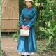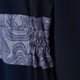 这款洋装以 和服为灵感 设计,整体剪裁仿照传统着物的轮廓。腰部特别选用 提花布料(ジャガード),模拟出如同和服腰带般的质感与层次。背后精致点缀有 原创设计的花卉刺绣纹样 —— 芍药、百合与鸡冠花,展现低调却华丽的和风格调。