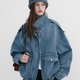 SIZE M 后中长64.5cm 胸围134cm 下摆92cm 袖长58cm 肩寬55.5cm