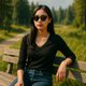 黑色雾面框搭配烟灰镜片,时尚中性风格,适合日常与户外活动。