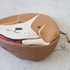 这款腊肠犬图案小包,以丝网印刷方式将图案染制于帆布上。