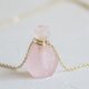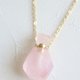 使用天然粉晶制作的精油瓶,配以电镀18k金项链。