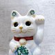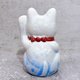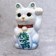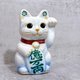 日本清水烧招财猫 花结晶 青白 亿万両 左 特小