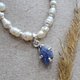 由不同形状和大小的天然淡水白珍珠制成的颈链。天然非洲坦桑石吊坠和手工耳环。有一条银延长链可以调整长度。所有配件均由 925银制成。 每件作品都附有天鹅绒礼品袋。