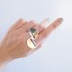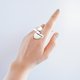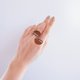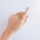 こちらの作品は、半円にカットした真鍮にシルバーを組み合わせた、独特なフォルムが印象なリングです。