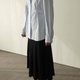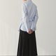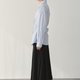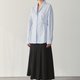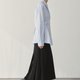 以青果领和前后结构式层叠设计为核心,展现日常衬衫的结构转译。轻质纯棉面料,挺括不硬。可调节式系带结构可自由收放腰身,平衡外观与功能。整体便于搭配高腰裤或伞裙,构建清爽利落的穿着感。