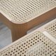 椅面使用高品质之藤材制作,藤制品同时也是台湾早期出口之重要产业。藤为天然素材,具有高伸张拉力与轻量特性,乌目藤编技法强度更能提供载重需求。木藤结合应用无金属钉的压藤技术,透过藤芯卡扣固定住木与藤编即可,也提供了未来维修的便利性。其网状结构适合台湾海岛型闷湿热气候, 相较木材质坐垫更能达到透气凉爽的使用功能。