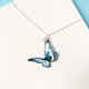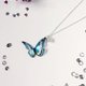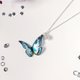 < 手绘白纹蓝色闪蝶飞翔形蝴蝶银白玻璃球颈链 项链 >