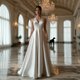 这件礼服由缎面制成,触感舒适,轻盈飘逸,尽管拖裙奢华而修长。搭配一顶面纱,定会为这件礼服锦上添花!