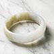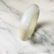 缅甸产翡翠,以细腻的乳白色为底,柔和的米黄色自然晕染其中。质感温润细腻,宽版设计更显可爱与优雅。