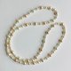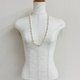 这是一条日本制造的玻璃珍珠项链,在原来的玻璃材质上涂上了多层原来的珍珠漆。这条歌剧大小的项链由多种彩色珍珠混合而成,质地细腻,光泽恰到好处。不使用金属配件,透过连续加工完成。珠子的直径约为 4 毫米和 8 毫米,总长度/内周长约为 75 厘米,可以轻松佩戴在头上。特征之一是玻璃珍珠特有的清凉感。