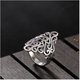 Real 925 Sterling Silver Open Finger Rings Women Vintage Hollow Totem Patterns Rhombus Ring Personalized Dress Jewelry