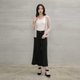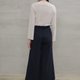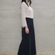 从容不迫的宽裤剪裁,选用略带垂坠感的精致面料,搭配俐落的打褶设计,没有多余的装饰,让优雅干练的身形在都会衣着中展现不疾不徐的知性风采。