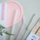 ◆内容物:定制刻字粗吸管(透明)、弯吸管(粉红)、吸管刷、纸纤餐具袋(四款可挑)