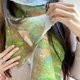 视觉特色:采单面图案设计,强调色彩的穿透与流动。结合了异材质纤维与网纱,让光线能在围巾间跳跃。它适合在微凉的季节,或是作为室内搭配的优雅披肩,展现温柔的仙气。