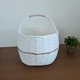 这是一款白色的单把手编织篮。