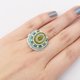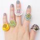 指輪を作るとき、まずメインのビーズを決めます。 そのビーズを引き立てるように隙間なく刺繍をすると、カラフルでにぎやかで、まるでおしゃべりをしているような指輪に仕上がります。 そんな指輪を付けて出掛ければ「その指輪なあに?」とさらにおしゃべりが広がることでしょう。 そうなったらいいなと思いを込めて作ったおしゃべりな指輪です。 飾り部分のサイズ:直径2,5㎝ 指輪のサイズ:フリー(ご自分で調整いただけます) 重さ:約5g 素材:ビーズ、天然石等 ケースは付いていません。小さなオーガンジーの袋に入れてお届けします。
