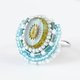 おしゃべりな指輪26 フリーサイズ ビーズ刺繍のリング フラワー ブルー クリア カラフル マルチカラー
