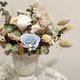 永生花盆花采全天然花材制成,以进口永生花搭配数种干燥花材及叶材,保有天然植物的质感,美观且不需费心照顾。盆器大小适合摆放餐桌、角落一隅欣赏,也很适合做为开幕花礼、乔迁贺礼赠送。耐看百搭的低饱和色系,可以融入各种风格的居家摆设。