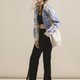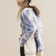 灰蓝色高雅兰花印花拼接米色布料的铺棉保暖外套