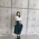 ▴裙子前后的剪裁呈现明显的弧形,侧面看前后的布料会有些微重叠,整体很活泼有朝气。走路、奔跑时裙子随风飘扬的线条很美。