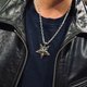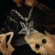 恶魔羊头巴风特是撒旦的代表,有着羚羊的头颅和人类的身躯,两角之间燃烧着智慧的火焰,被喻为宇宙平衡的神奇光源,在万物之上照耀着;额头上倒五角星印记代表着撒旦教会的徽章,象征着人类的精神本质。我们运用银器的细节,完美诠释巴风特时尚的暗黑魅力。