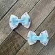 公主蝴蝶结,一对适合女孩的发饰以艾莎公主主题装饰 白和蓝色罗缎丝带和玻璃丝带装饰着雪花图案 蝴蝶结尺寸 8cm 弹簧夹尺寸 6cm 1套/2件,左右发夹