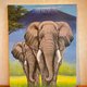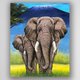 大象亲子矗立在神圣山脉下,