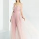 2 piece wedding set DONNA. An evening jumpsuit for those who like to be in the spotlight. Wedding set consist of corset based jumpsuit with pockets and a smoky soft tulle bridal cover up. Corset nicely opens the shoulders, accentuate curves without cinching your waist and slims down the silhouette. The jumpsuit will become part of the wardrobe of every stylishly-dressed girl, because its can create many casual or elegant looks on its basis. Available for plus size girls. (For standard size the belt is non detachable! It can be detachable by your request for custom size).