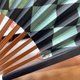 这把扇子的设计灵感源自日本最具代表性、且历史悠久的传统纹样之一——市松纹(Ichimatsu Moyo)。市松纹由两种颜色(在此为绿色与白色或相近色)的方格交错排列而成,构成一种重复而规律的图案。这种纹样看似简单,却蕴含着深厚的寓意:其无限延伸、永不中断的特性,象征着繁荣、发展、永恒与子孙绵延,被视为极其吉祥的图案。