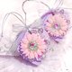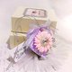💜粉红扩香花朵 韩国水钻 银色叶片 紫色渐层爱心形底版 银色吊挂绳 半透明银色缎带 精美礼盒包装